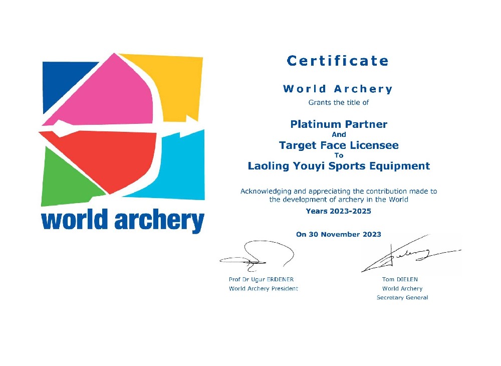 國際射箭聯(lián)合會(huì)-白金合作伙伴、國際射箭聯(lián)合會(huì)認(rèn)證器材、中國射箭協(xié)會(huì)審定器材